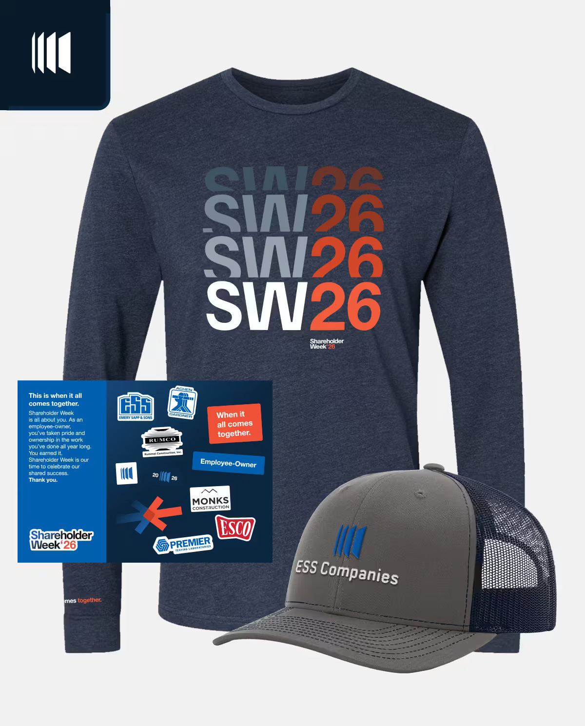- In this long sleeve, you carry the whole ESS Companies powerhouse on your back — literally. Show your Shareholder pride on your chest and the reminder ‘When It All Comes Together’ on your sleeve.